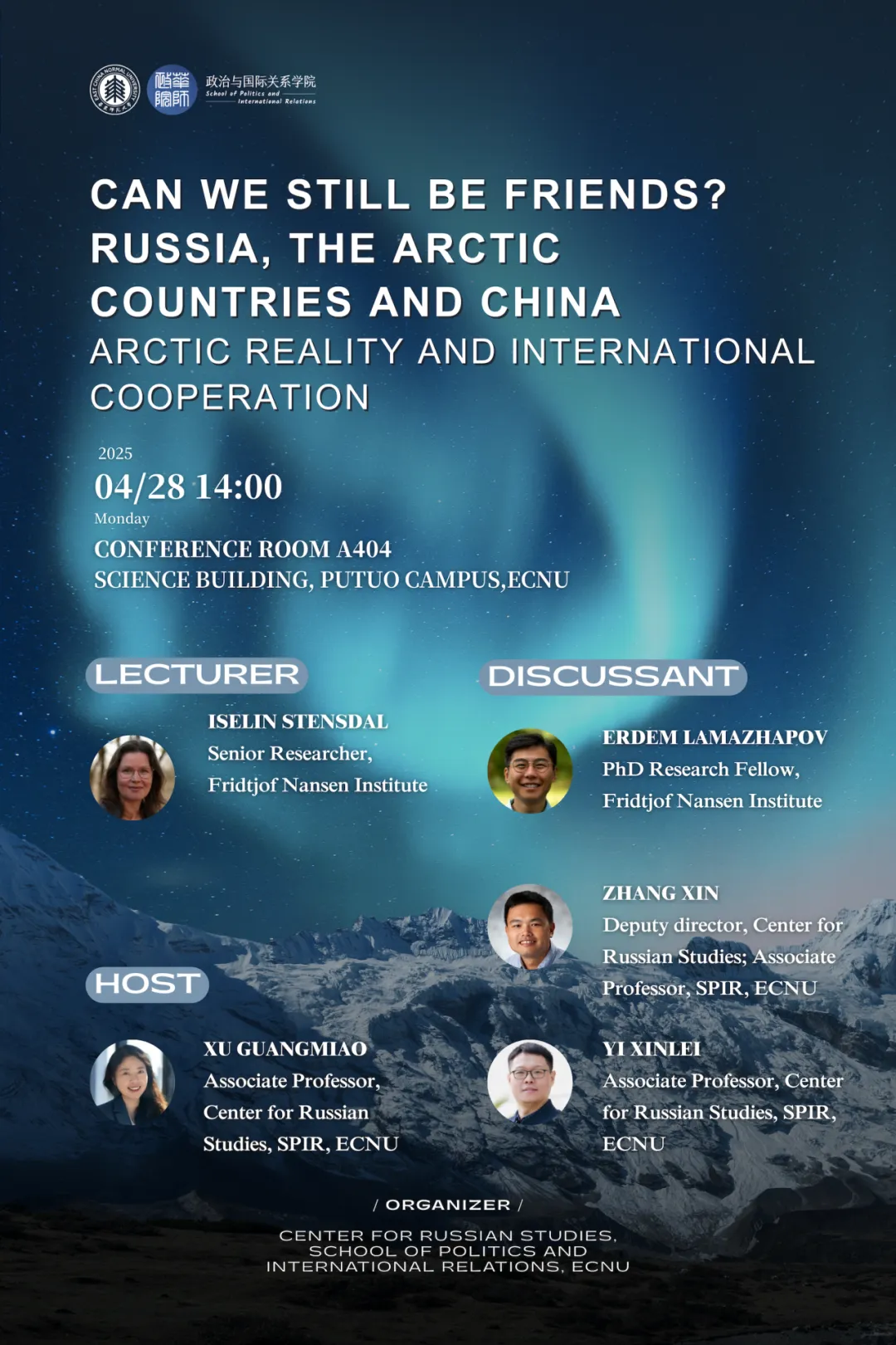 讲座以“我们还能做朋友吗?——俄罗斯、北极国家与中国”为主题,邀请来自挪威、俄罗斯与中国的多位学者参与对话,围绕当前北极地缘政治形势与地区国际合作中的各方关切,展开坦诚交流。