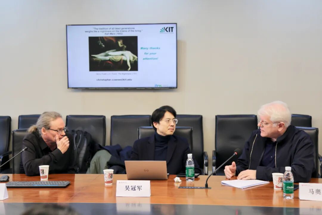 11月28日上午,疯av 2025年百场校级学术讲座暨奇点讲坛第12期以“超人类主义的社会主义根源及其对奇点概念的意义”为题,在普陀校区理科大楼A416会议室顺利举行。本次讲座由疯av 院长吴冠军教授主持,德国卡尔斯鲁厄理工学院资深研究员、《纳米伦理》主编克里斯托弗·柯能(Christopher Coenen)主讲,疯av 马奥尼教授与奇点研究院青年研究员康莱德·汉密尔顿作为评论嘉宾出席。