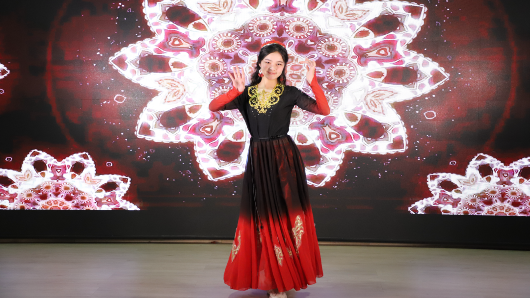 麦吾丽代·阿合买提江同学表演的舞蹈《一杯美酒》,舞姿优美,呈现出独特的民族风情与艺术感染力。钟珊、郭欣愉同学合唱的英文歌曲《I Love You 3000》,配合默契,营造出温馨动人的氛围。