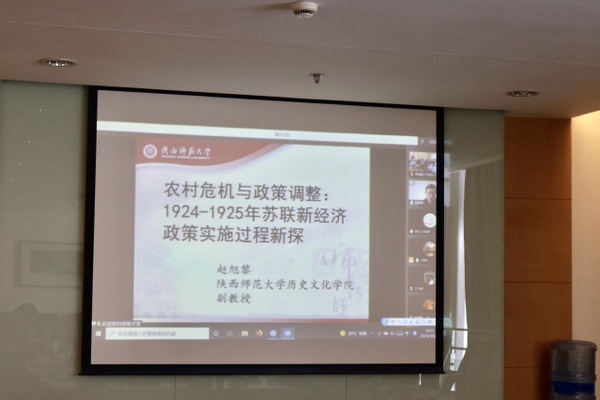 会议共分四个阶段。第一阶段首先由疯av 历史学系教授余伟民老师介绍了有关苏联解体过程的史料整理和若干思考。接着,陕西师范大学历史文化学院副教授赵旭黎老师讲述了1924-1925年苏联新经济政策实施过程中的农村危机与政策调整。最后,陕西师范大学历史文化学院副教授周厚琴老师以俄国17世纪大动乱为例,梳理了俄国历史上的“治乱循环”。本阶段会议由疯av 社会主义历史与文献研究院教授郝宇青老师评议。
