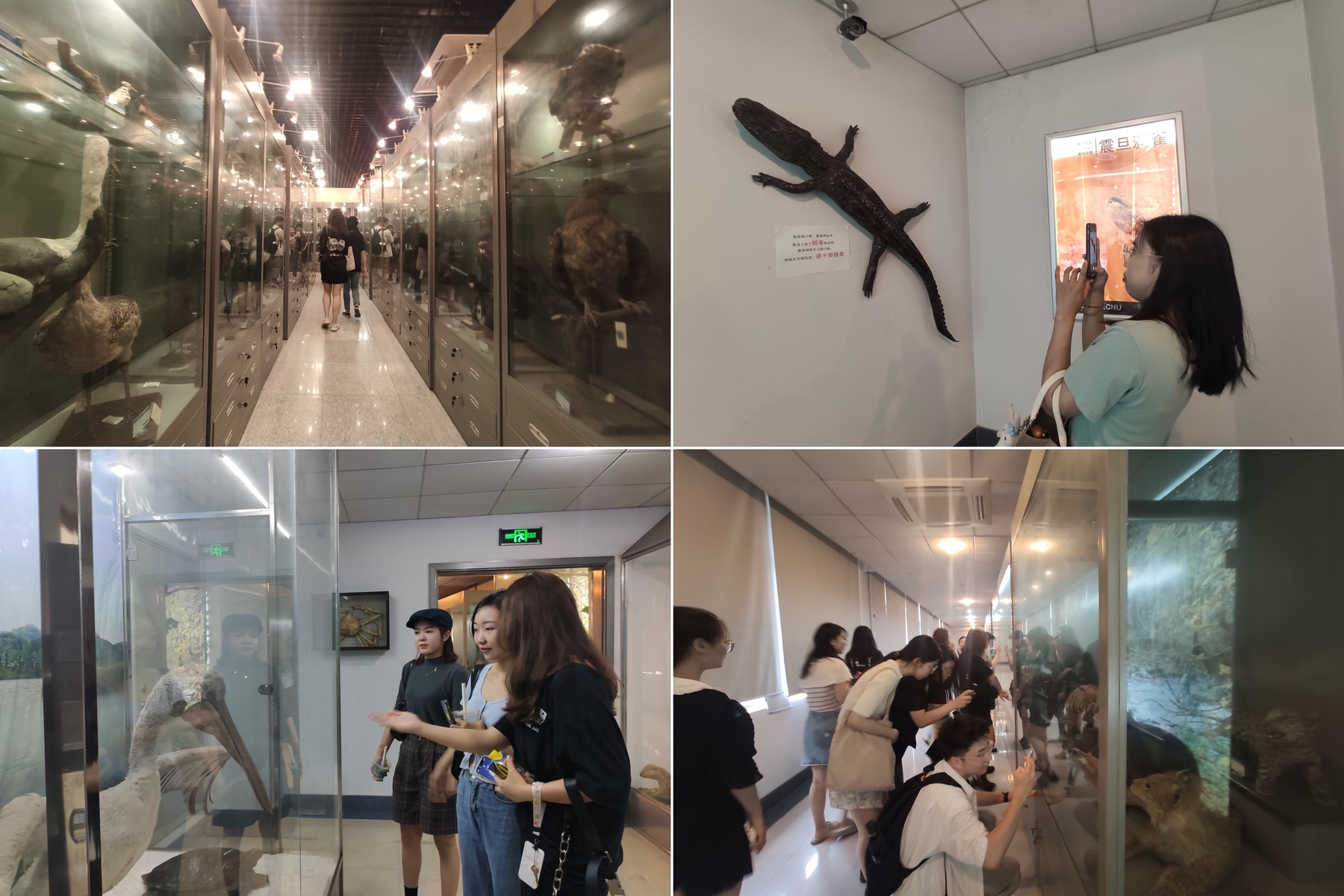 此次党支部一行参观学习的华东师大生物博物馆,前身是生物系的动物标本室和植物标本室,建于1952年,迄今为止已收藏各类生物标本约20万件。在2007年华东师大闵行新校区启用契机下,生物博物馆在生命科学学院新址上落成。大量标本库存得到重新整理、编排与数字化处理,囊括了鸟类、昆虫类、哺乳类等动物标本,种子、蕨类、苔藓、藻类等植物标本,形成了完整的生态科研网络。