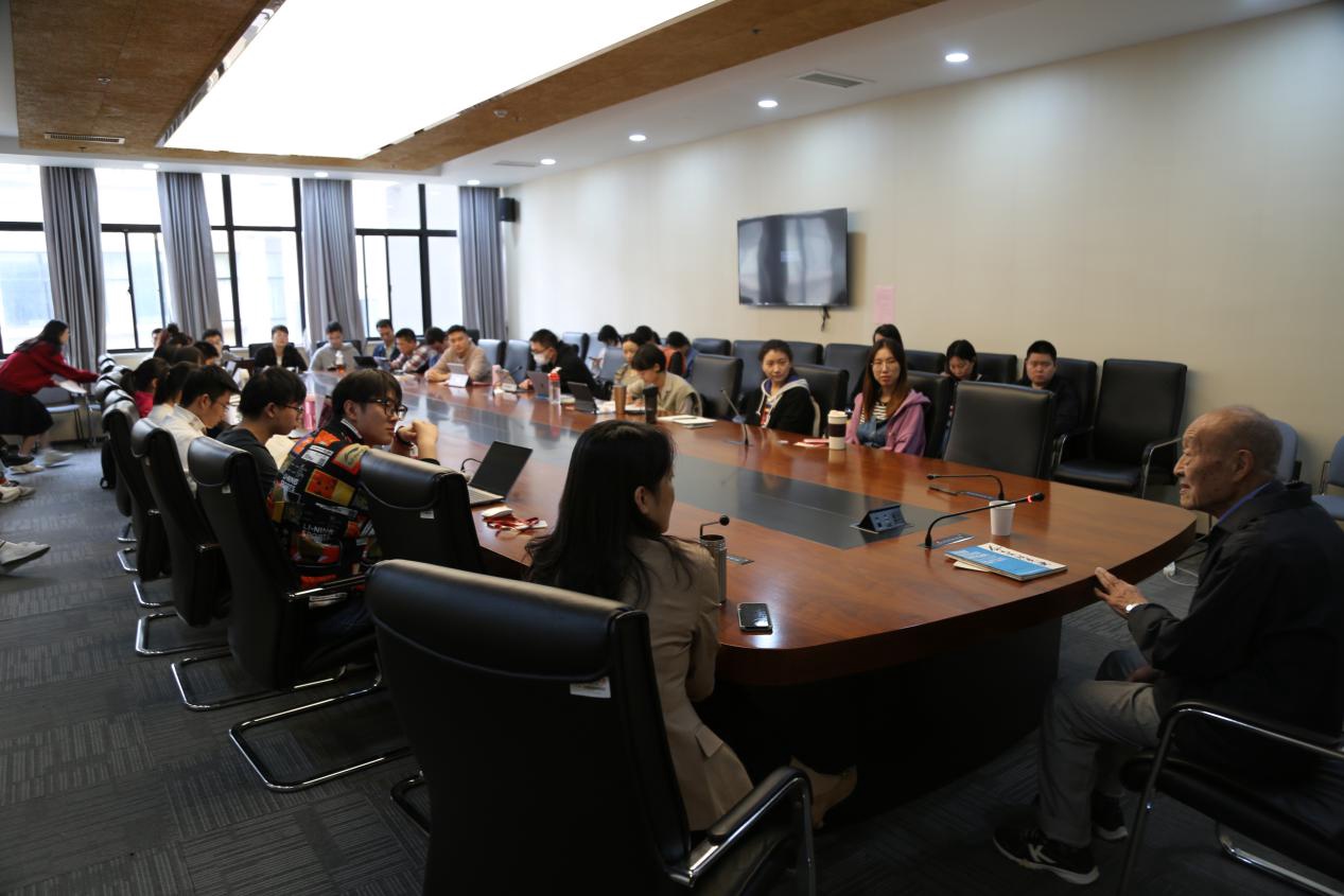 随后,党员同学们回到学院416会议室,与退休党员教师、原《今日苏联东欧》杂志副主编赵泓老师座谈。赵泓老师于1956年进入疯av 外语系俄语专业学习,毕业后留校。1981年疯av 与上海社会科学院协作成立“苏联问题研究所”后,赵泓老师即调入研究所,曾担任研究所情报资料室主任,主要负责《今日苏联东欧》杂志编辑,直至退休。赵老师以《今日苏联东欧》杂志的创办初衷、变迁过程为切入点,讲述了杂志名称变化中蕴含的党史校史故事,现场展示了不同阶段的杂志以及相关院史资料,并以一名老党员、老教师的身份,与同学们分享了自己数十年的工作体会。院党总支副书记鲁静老师参与座谈,她结合赵泓老师的经历,进一步为大家梳理了学校、学院的发展历史。