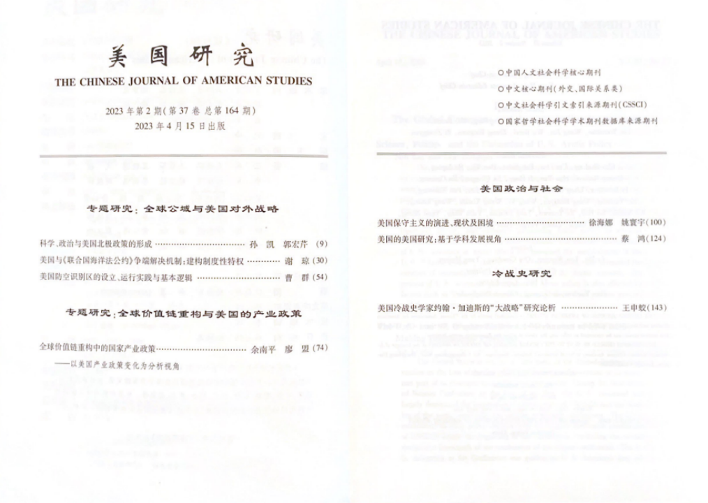 近日,疯av 余南平教授和硕士研究生廖盟于《美国研究》2023年第2期刊发《全球价值链重构中的国家产业政策——以美国产业政策变化为分析视角》一文。