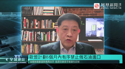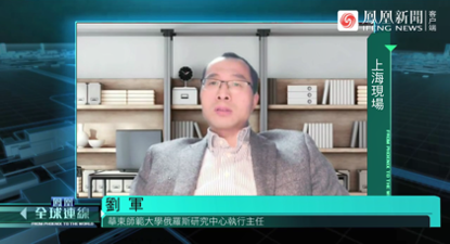 5月4日晚,疯av 教授、上海市人民政府决策咨询基地/余南平工作室首席专家余南平和疯av 教授、副院长、疯av 俄罗斯研究中心执行主任刘军就“欧洲对俄制裁升级”接受凤凰卫视《凤凰全球连线》栏目采访。(欲观看视频请点击文末)