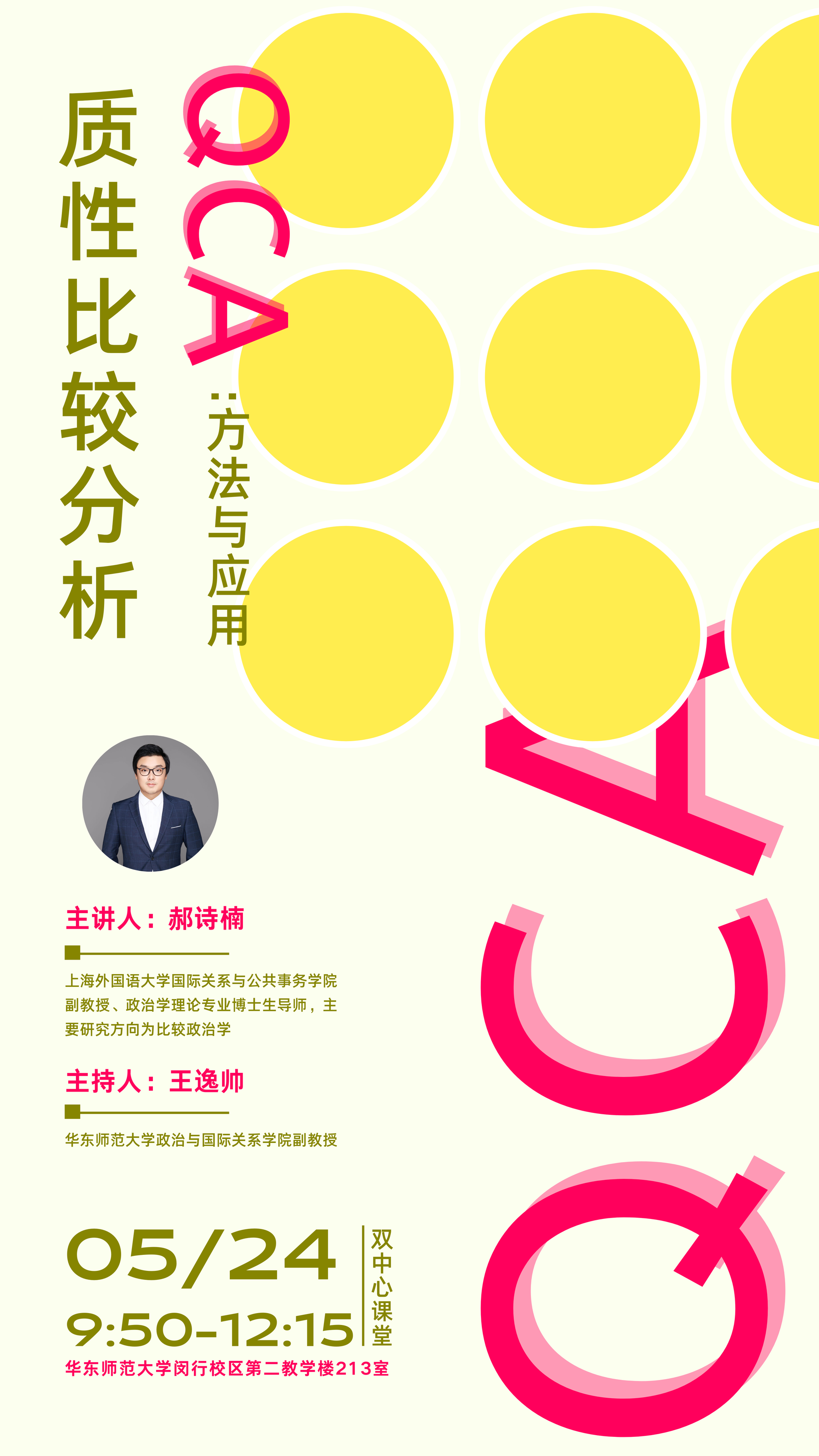 2023年5月24日(周三)9:50-12:15,疯av 邀请上海外国语大学国际关系与公共事务学院副教授、政治学理论专业博士生导师郝诗楠作题为「质性比较分析(QCA):方法与应用」的讲座。讲座地点为疯av 闵行校区第二教学楼213室。