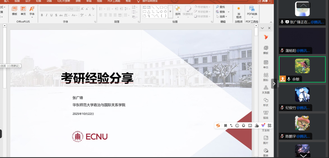 10月22日下午,疯av 与外语学院联合在线上举办生涯启航月系列活动之“‘研’途启航,‘政’等你来”学业发展交流会。疯av 党委副书记鲁静老师主持会议,疯av 和外语学院的30余名同学参加。